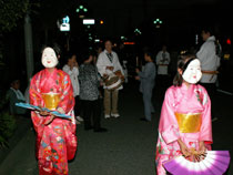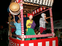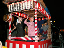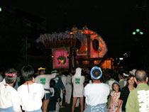 平成17年8月27日(土)羽衣いちょう通りにおいて羽衣まつりが開催されました。午後6時過ぎ、あたり夕闇につつまれるころ、ねぶたや万灯みこしに明かりがともりました。そして、お囃子が5団体参加し祭りを盛り上げました。