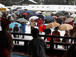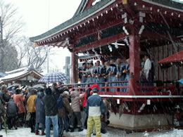 立川諏訪神社で節分の豆まき