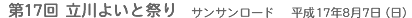 平成17年8月7日(日)午前10時から午後8時30分まで、サンサンロード(立川駅北口モノレール下)において第17回立川よいと祭りが開催されました。